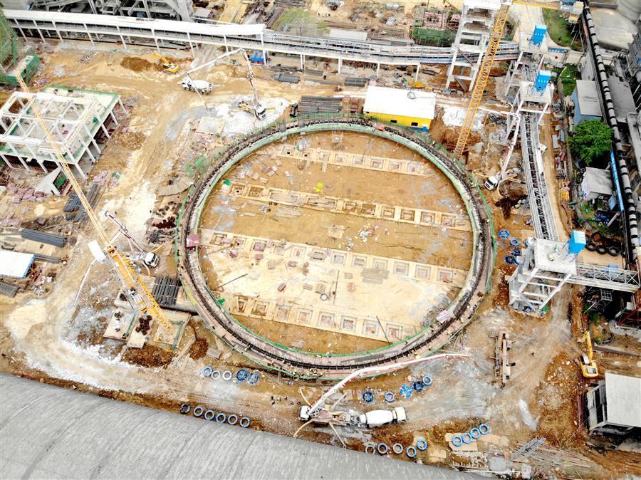 “開始澆筑!”3月15日下午2點40分,隨著魚峰水泥技改項目總負責人的一聲令下,4臺混凝土泵車和混凝土攪拌車準時就位,4臺天泵同時啟動澆筑。這標志著項目熟料庫的筒體滑膜施工正式啟動,并以每小時10厘米的速度向上滑升。項目部開足馬力、鉚足干勁,迅速掀起“奮戰(zhàn)一季度”新一輪項目建設高潮。