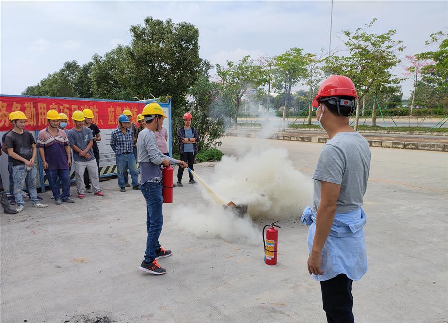 本次活動(dòng)分為消防知識(shí)培訓(xùn)和消防演練兩部分。演練開(kāi)始前,項(xiàng)目管理人員向參培人員講解消防知識(shí),并展示滅火器的使用方法以及使用滅火器救火的要點(diǎn)。演練中,參培人員在管理人員的指導(dǎo)下分組進(jìn)行實(shí)地消防滅火演練,大家積極動(dòng)手迅速掌握了利用干粉滅火器進(jìn)行滅火的技巧,演練取得良好效果。