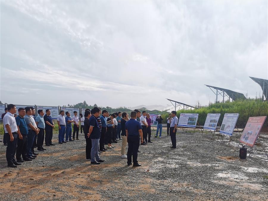 7月6日,寧明縣重大項目年中走會考察組到冶建公司基礎分公司承建的寧明縣寨安光伏項目光伏區(qū)建筑與安裝工程項目考察。寧明縣委書記王耀雷、縣長孫金水及縣領導班子成員參加。