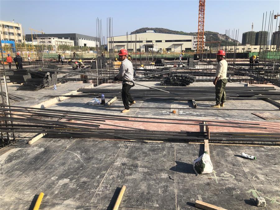 該項目是柳州市重點項目,總建筑面積為8.7萬平方米。目前靜壓樁施工已全部完成;1號樓E區(qū)頂板完成;H區(qū)底板完成;F區(qū)與G區(qū)底板防水保護層完成;2號樓A區(qū)二層模板安裝完成,D區(qū)負一層滿堂架搭設完成。