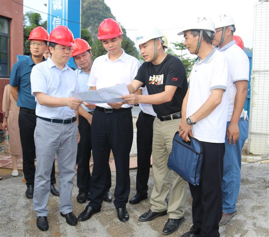 6月24日,河池市委常委、宣傳部部長(zhǎng)、副市長(zhǎng)陸海生到桂金分公司承建的河池·澳門國(guó)際城雙語幼兒園工程調(diào)研。