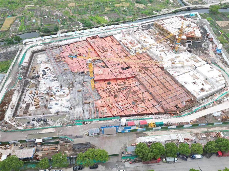紹興市柯橋區(qū)華舍小學(小赭小學)新建工程(一期)項目主要建設內容包括新建綜合教學樓、專用教學樓、綜合行政樓、風雨操場、食堂、報告廳、地下室等,同時根據(jù)教學需要和學校文化建設的要求進行校園裝修及配置相關設施,建筑面積約為3.74萬平方米,工期540日歷天。目前,項目1#樓(食堂、報告廳)一層頂板梁筋綁扎完成,PC構件吊裝中;地下室支撐梁拆除完成,地下室三區(qū)土方回填完成、鋼板樁拔除完成;地下室一區(qū)至三區(qū)頂板澆筑完成,地下室四區(qū)至十區(qū)頂板模板安裝、鋼筋綁扎中,地下室十一區(qū)盤扣架安裝中,地下室坡道墊層澆筑完成。