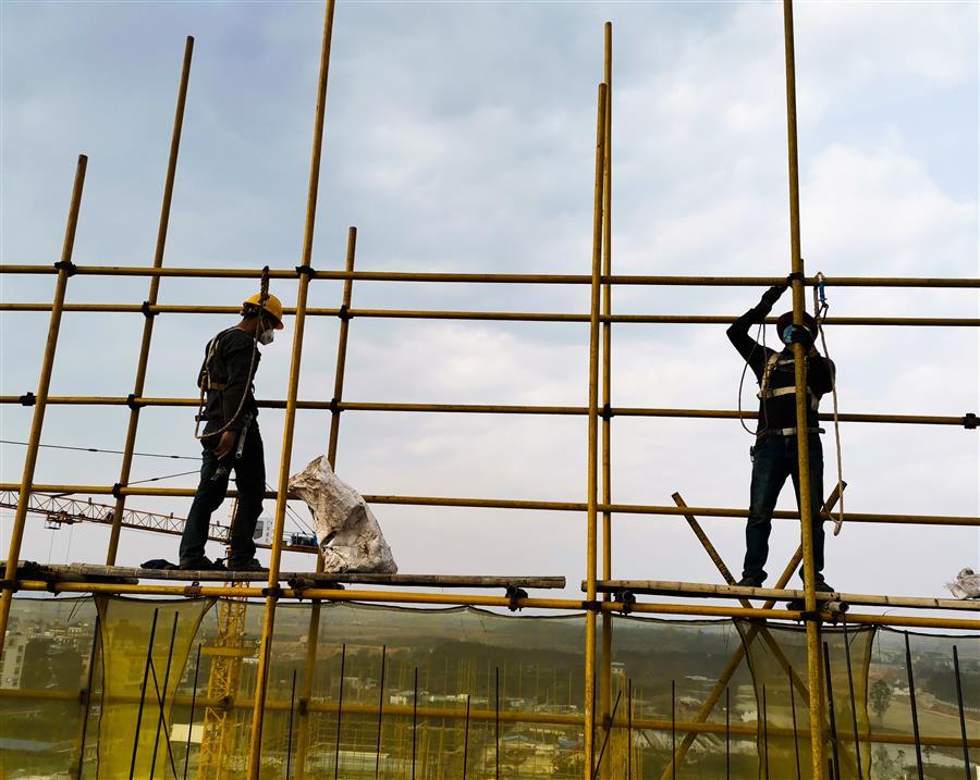 在中房綠景二期項(xiàng)目現(xiàn)場(chǎng),機(jī)器轟鳴,不同工種的工人正在緊張有序開(kāi)工,一幅熱火朝天的景象替代了往日的寂靜。